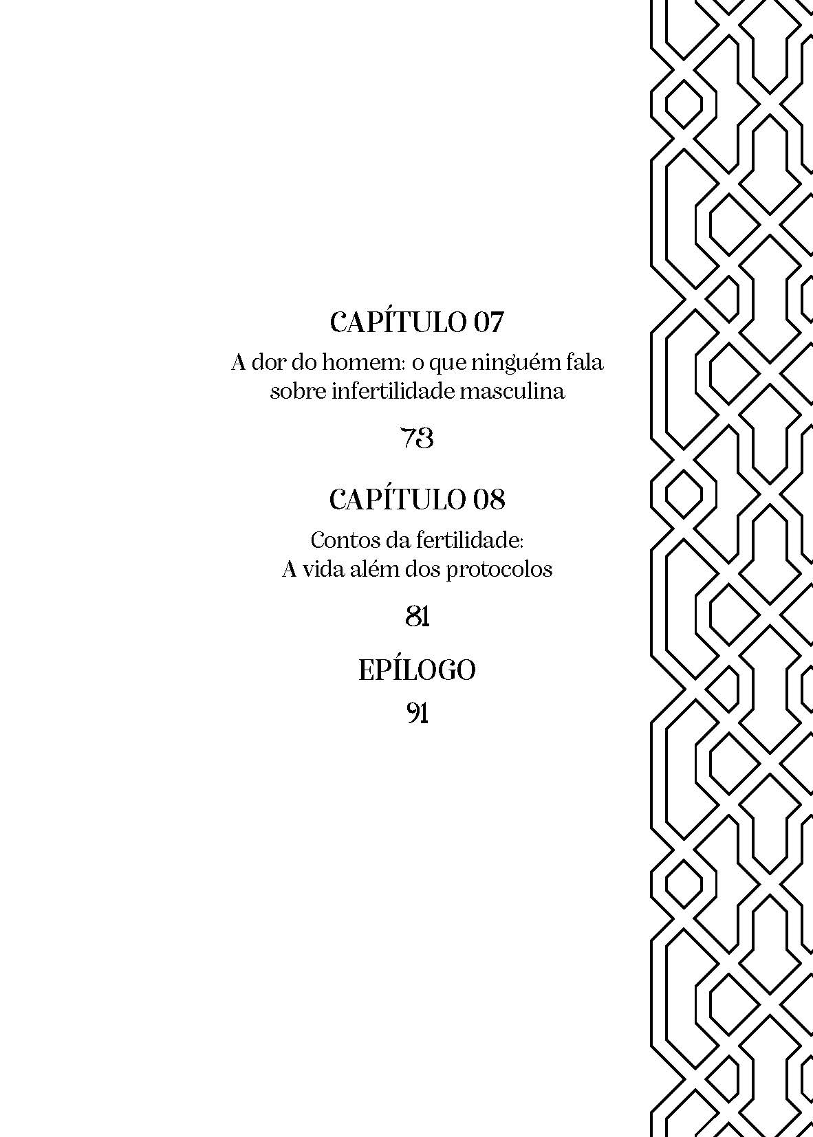 Ao longo dos capítulos, o leitor encontra reflexões profundas sobre o impacto emocional da infertilidade, o relógio biológico, a influência do estilo de vida, os aspectos psicológicos do tratamento e os três pilares fundamentais da reprodução assistida. O livro também dá voz a temas pouco discutidos, como a infertilidade masculina e o sofrimento silencioso que acompanha muitos casais.